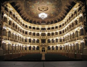 Il teatro fu perciò inglobato nel più ampio complesso del palazzo dell’Accademia Virgiliana che ancora oggi ammiriamo, ristrutturato su progetto di Giuseppe Piermarini.